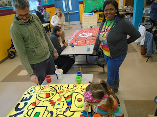 Third,  Fourth, and Fifth grade artists are working hard to complete the fence mural we started last spring.  Students are painting the active figures inspired by Pop artist Keith haring with bright, vivid colors.  They are also working on adding color to the fruits, veggies, and garden insects that are depicted on the fence posts.  I can't wait to see this mural installed!  We are hoping to have it finished and up by the end of this semester; stay tuned for pictures of the finished fence!