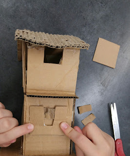 Fourth grade artists are studying the artwork of Beverly Buchanan, and looking closely at her sculptures. Students are creating their own house sculptures out of cardboard. Texture and variety of shapes and details are part of the criteria for this project. This is a favorite project of many students, and my fourth graders are finally working on their own this year after seeing past students house sculptures!